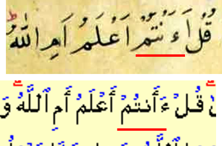 قُلْ اءَنْتُمْ أَعْلَمُ أَمِ اللَّهُ (البقرة 140)