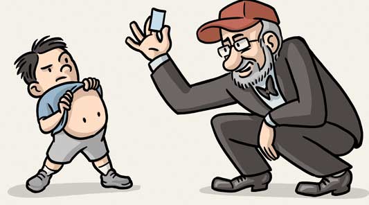 أرني أقبل منك حيث رأيت رسول الله – صلى الله عليه وعلى آله وسلم – يقبل فقال : بقميصه, قال : فقبل سرته .