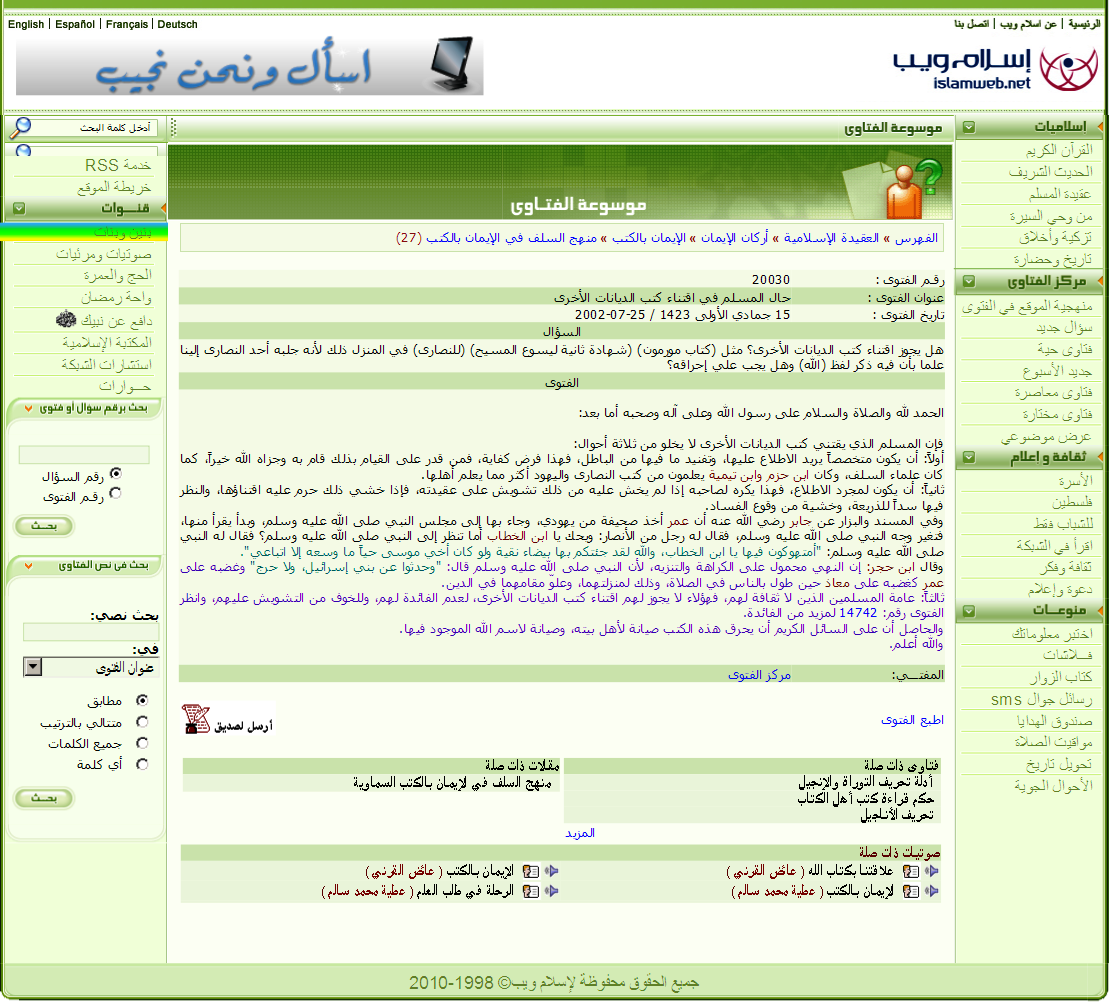 فإن المسلم الذي يقتني كتب الديانات الأخرى لا يخلو من ثلاثة أحوال: