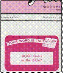 يحوي مقالاً نقله مصوراً من مجلة استيقظ التابعة لهرطقة شهود يهوه ، ويروج ديدات على أساسه بأن الكتاب المقدس يحتوي على خمسون ألف خطأ !!