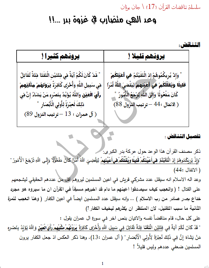 سلسلة تناقضات القرآن (17) \ جان يونان