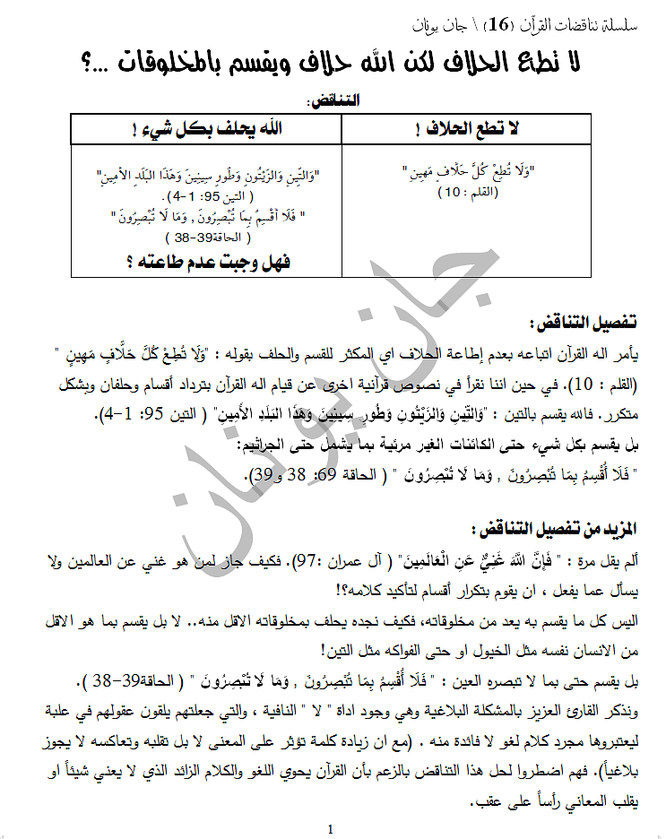سلسلة تناقضات القرآن (16) – لا تطع الحلاف لكن الله حلاف ويقسم بالمخلوقات …؟